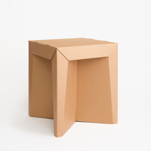 Her work explores the creative potential of cardboard, turning a humble material into functional, engaging design objects and environments.
